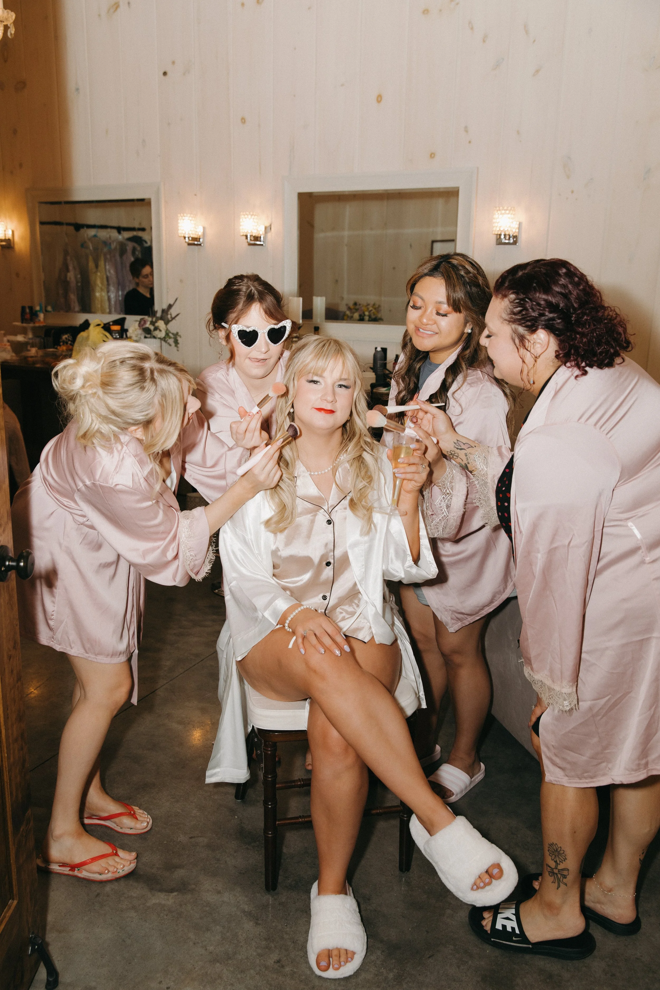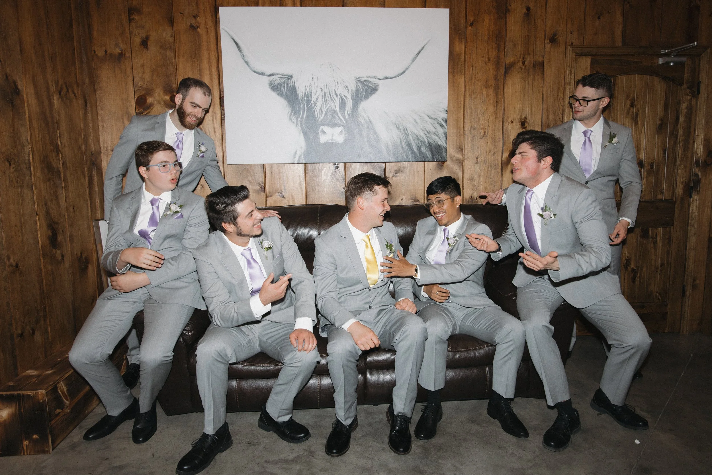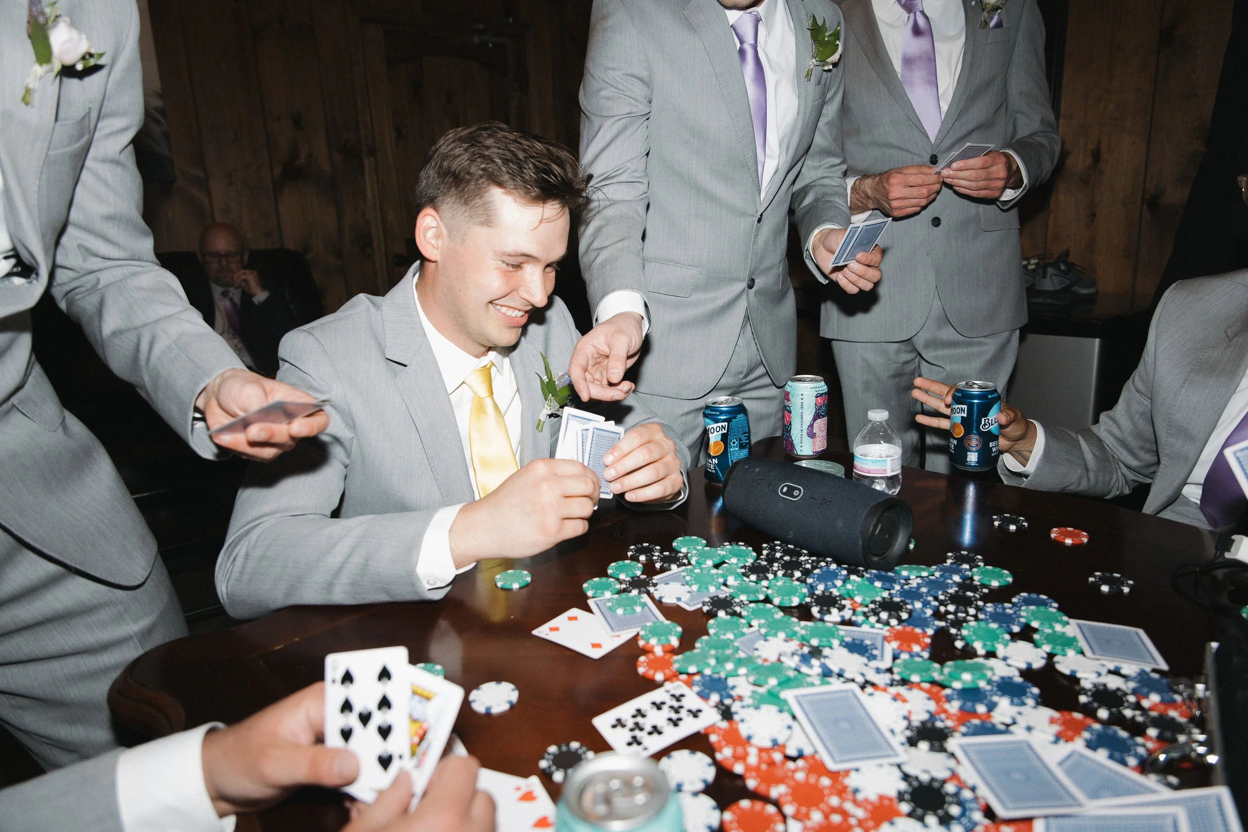 The day began with quiet, intimate moments. The bride enjoyed champaign with her bridesmaids in a sunlit suite, while the groom stood shoulder to shoulder with lifelong friends, helping each other adjust ties and pin boutonnieres and playing cards. Family gathered close as final touches came together, and you could already feel the joy building for what was about to unfold.