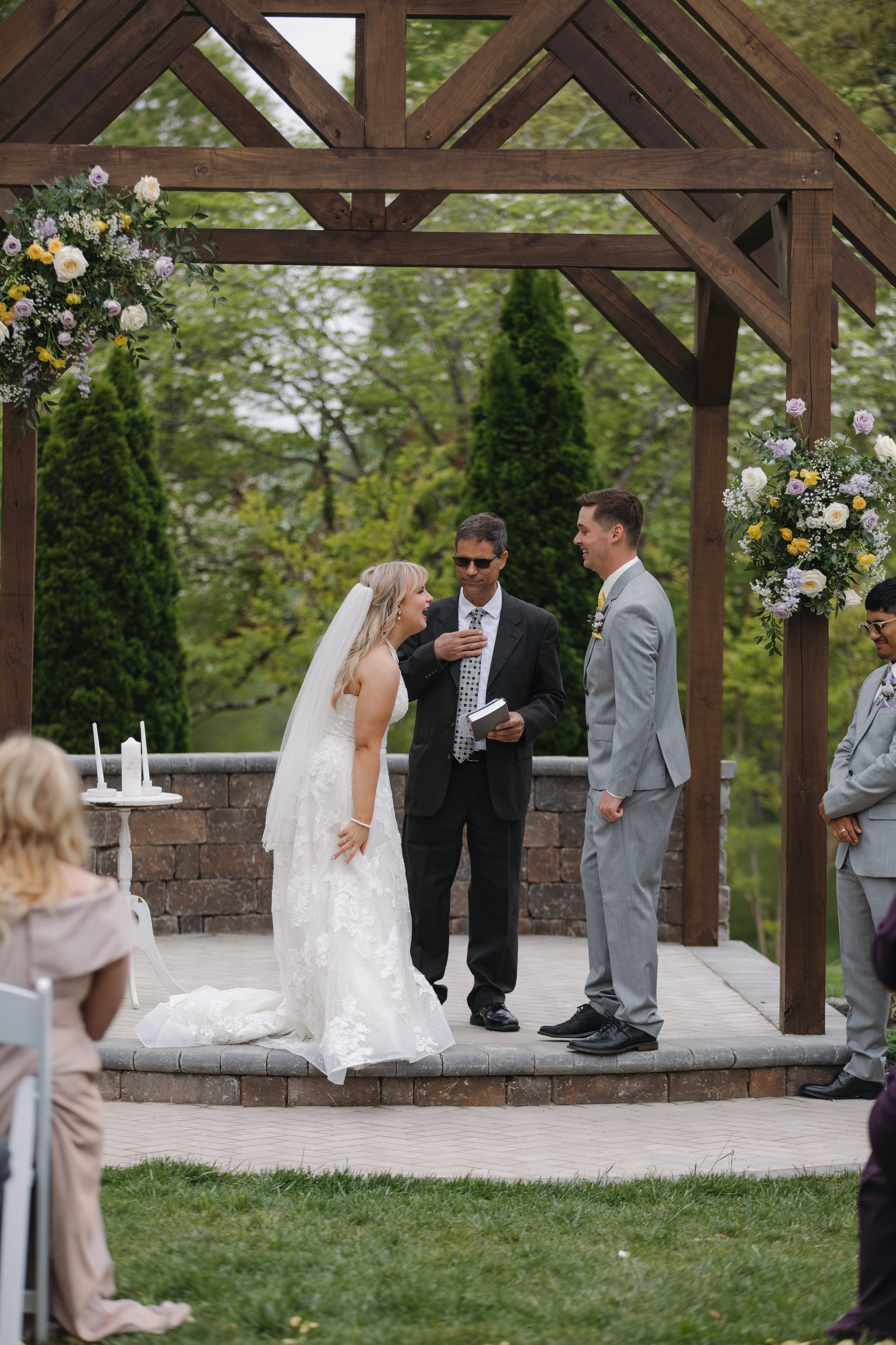 The ceremony unfolded outdoors beneath a canopy of spring blossoms, with vows exchanged under a sky painted in pastel hues. Guests wiped happy tears as the couple promised forever to one another, surrounded by the people who have loved them through every chapter of their lives. There was laughter, a few perfectly timed jokes, and that beautiful, quiet hush that always seems to fall right before two people say I do.